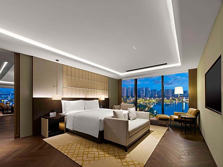 The suite's kitchenette, which features a refrigerator and a microwave, is available for cooking and storing food. The spacious air-conditioned suite provides a flat-screen TV with cable channels, a mini-bar, a tea and coffee maker, a seating area as well as lake views. The unit offers 1 bed.